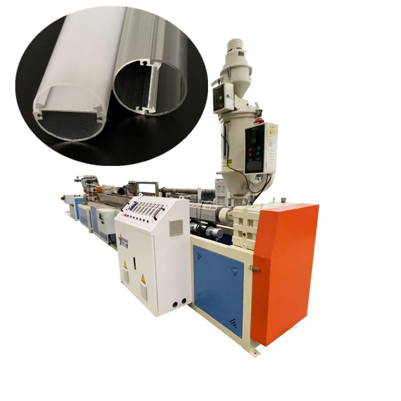 PC/ABS燈罩擠出生產(chǎn)線:由真空上料干燥機、SJ55型單螺桿擠出機、擠出模具、冷卻定型平臺、牽引機、切割機、不銹鋼堆料架、智能電控柜組成。PC/ABS燈罩擠出生產(chǎn)線可生產(chǎn)寬度50mm以下的PC/ABS燈罩等型材、也可用于PE/PP/ABS/PC等小尺寸異形材產(chǎn)品的擠出。