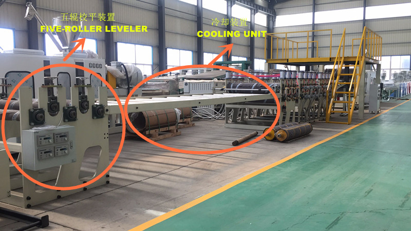 青島東方之星的一套完整的PE鋁塑板生產(chǎn)線由SJ150×33單螺桿擠出機、復合模頭、三輥壓光機、雙面鋁卷放料架、雙輥熱復合機、八輥熱復合機、六輥冷卻導輥架、覆膜機、四輥牽引機和切割機等設備組成,通過PLC系統(tǒng)實現(xiàn)整線智能化控制。