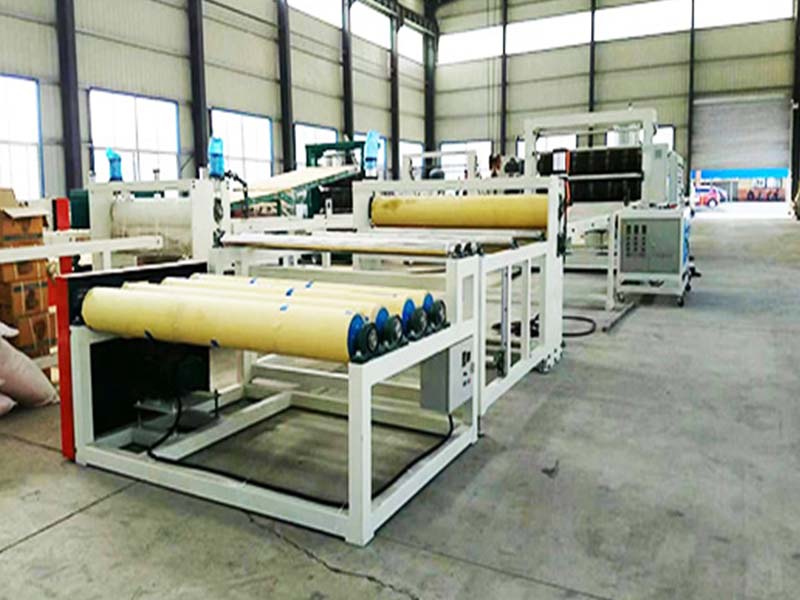 該設(shè)備采用SJ120或SJ-150單螺桿擠出機(jī)、T型彈性??诳烧{(diào)模具、立式或斜45度三輥壓光機(jī)、三合一水溫機(jī)、不銹鋼冷卻托架裝并裝有寬幅可調(diào)切邊刀、橡膠輥牽引機(jī)、雙工位氣漲軸收卷機(jī)。